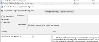 • Regel: Minimale PIN-Länge für Systemstart konfigurieren