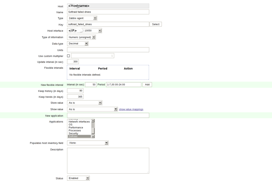 UserParameter=softraid_failed_drives,test -e /proc/mdstat&&grep blocks /proc/mdstat|grep -vc "\[U*\]"